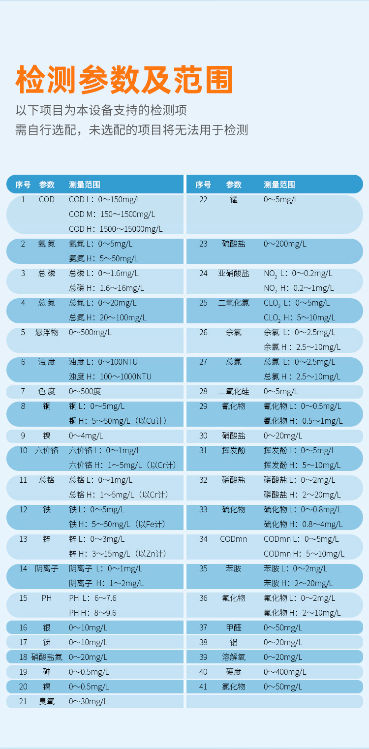5、用戶還可以自行開發(fā)用戶程序和試劑,以適應不同場合不同水體狀況。
